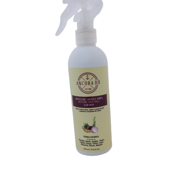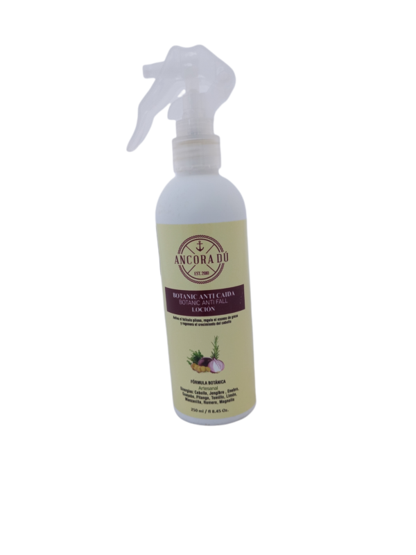 Propiedades: Loción Botánic Anti Caída que estimula el folículo piloso, realiza una activa nutrición, evita la degradación y mantiene a los folículos libres del exceso de grasa; evitando la caída, nutriendo la matriz y papila dérmica, reactivando el crecimiento del cabello.