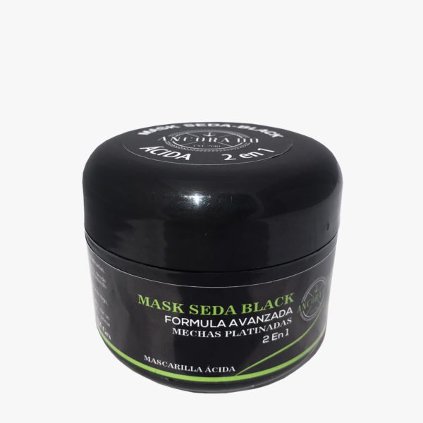 Mask Seda Black Complemento ideal intensificador para platinar mechas, cabelleras rubias, canas, y decolorados. Enriquecido en proteínas cuaternarias, extracto de yogurt, extracto de cacao, manteca de mango y manteca de karité. Sella las cutículas y reestructura el daño del cabello. Obtienes una cabellera hidratada, suave y con brillo.